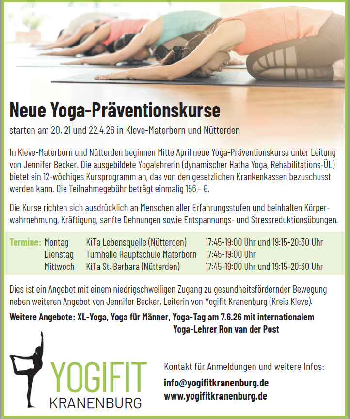 Dies sind die Gründe, warum die Krankenkassen die Teilnahme an Yogastunden als sinnvoll erachten und unterstützen. Sie sehen den präventiven Nutzen für jeden. Egal wo man gerade steht. Ob man sich gerade fit und gesund oder eher schwach und krank fühlt. Ob man gerade glücklich ist oder eher traurig-depressiv. Ob man alt oder jung ist. Ob man Frau oder Mann ist. Yoga ist ein Weg, auf den man sich begibt, und weist mögliche Richtungen an. Was ist gut für mich? Was sind meine Ziele? Wie kann ich ihnen ein Stück weit näher kommen?